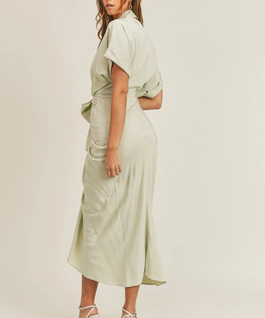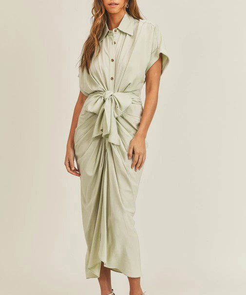 This stand out dress features short sleeves and front tie detailing. A classic midi length keeps this dress a must for work or play. The tencel fabric is soft and comfortable. So chic!