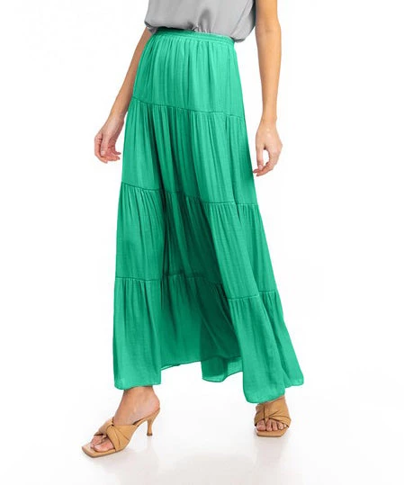 This darling tiered maxi skirt is a summer staple! Featuring an easy fit, this skirt is a must to throw on with a tee and sandals for casual days or dress it up for work with a sleek bodysuit.