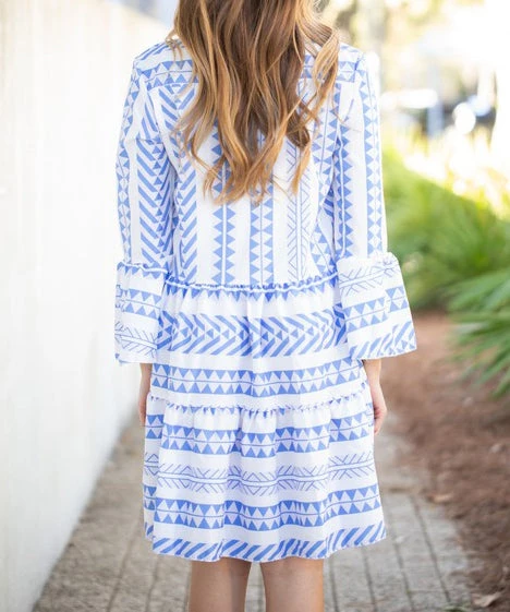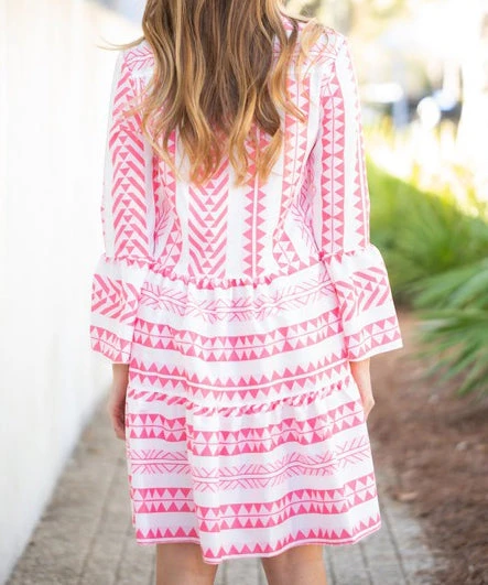 This fun print makes this dress stand out from the rest! Featuring a v-neckline, long sleeves and a tiered body, this dress is a must for casual summer days. Throw on with everything from sandals to sneakers to heels.