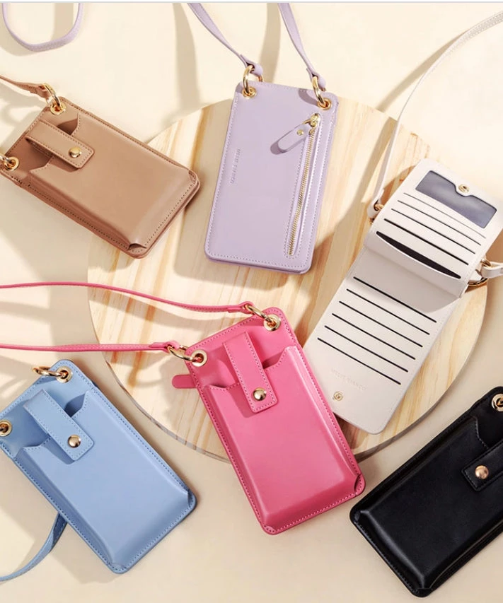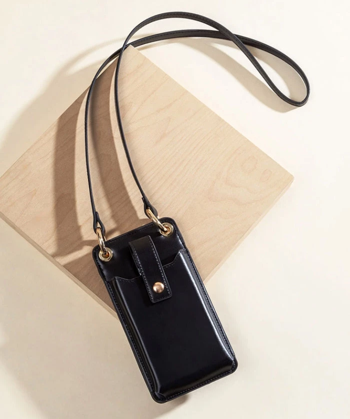 The Tina crossbody wallet is a perfect option for when you want to carry light. With its phone slot and 10-card slot, it offers plenty of space for your must-haves. Fold-over snap closure keeps your phone secure. Remove rings to store in your bag and use as a wallet. Features back zip pocket and center snap closure.